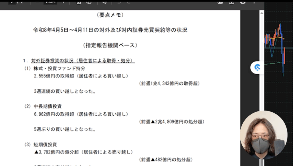 「3週ぶりの買い越し」「5週ぶりの買い越し」などがキーになっています。毎年お話していますが3月は決算の影響で円買い・円強になりやすいのですが、4月は再び円を売って海外の資産を買う動きが強まります。これがちゃんとデータとして目に見えるので共有しておきたいと思います。